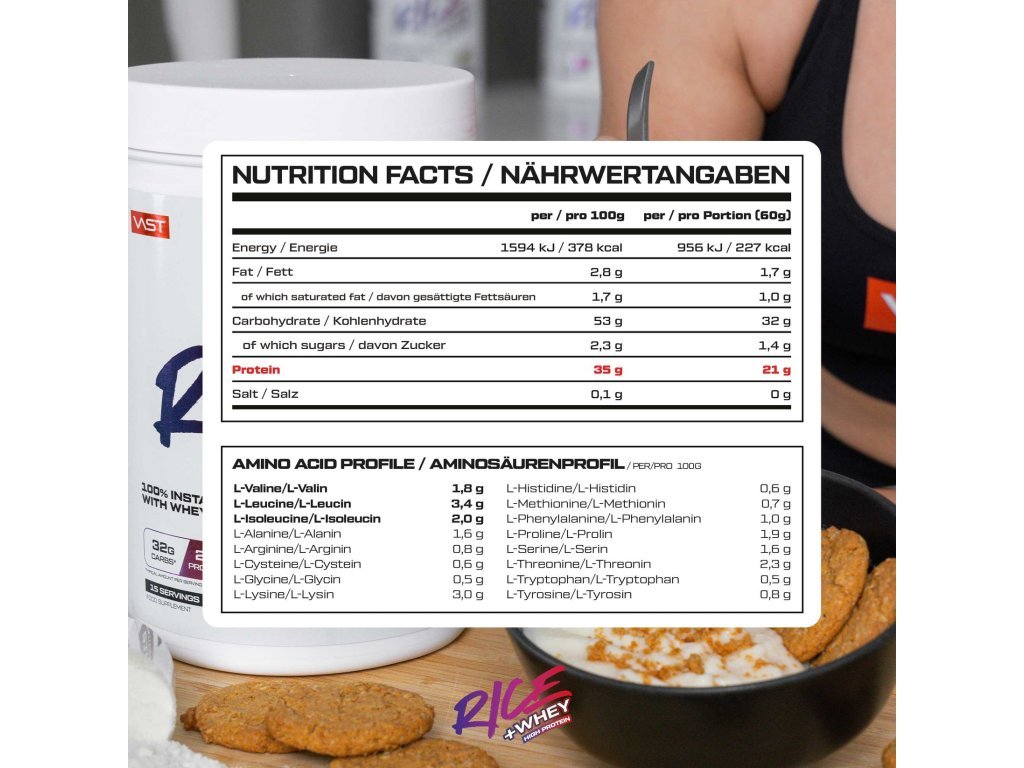 VAST Rice Pudding je instantná ryžová kaša z prírodnej extrudovanej ryžovej múky. Jedna porcia prináša komplexné, ľahko stráviteľné sacharidy a to bez pridaného cukru. Rýchlo ju pripravíte vďaka čomu je ideálna na raňajky, ako výživný snack alebo jedlo pred či po tréningu. Okrem výbornej chuti oceníte aj to, že je prirodzene bezlepková, bez laktózy a vegánska.