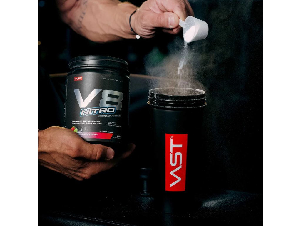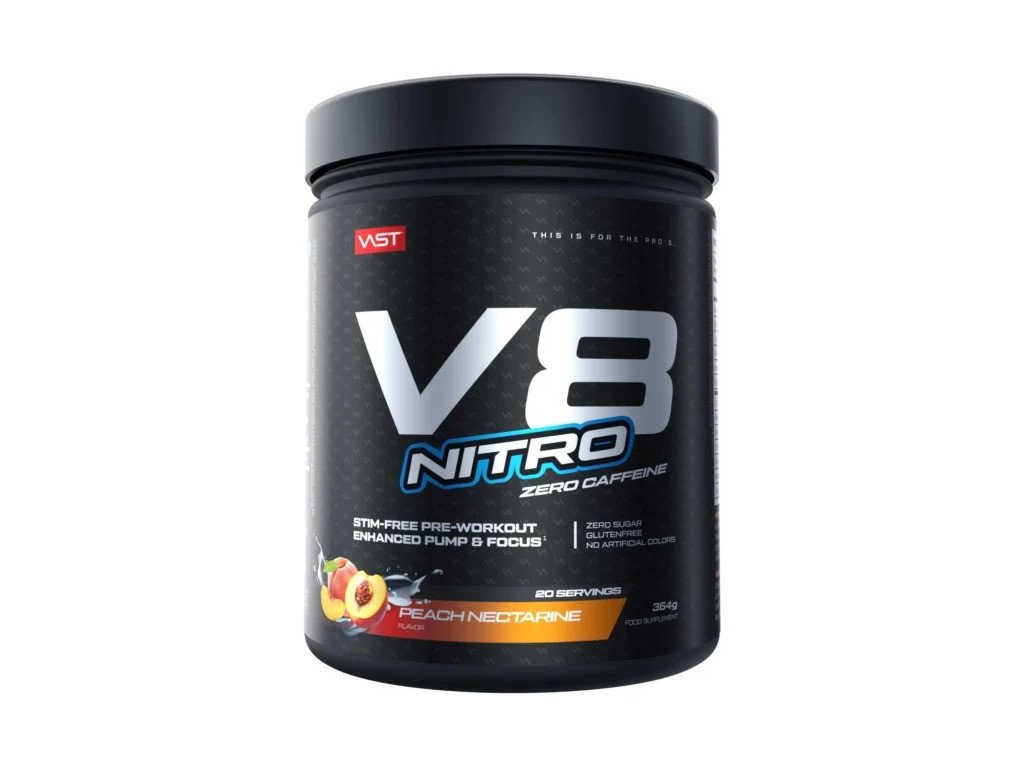 Predtréningovka bez kofeínu V8 Nitro. Výživový doplnok. So sladidlami.