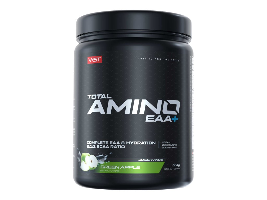 VAST Total Amino EAA+ s príchuťou zelené jablko je nová generácia vegánskych aminokyselín! Obsahuje všetkých 9 EAA, vrátane BCAA v osvedčenom pomere 2:1:1. Zaisťuje optimálnu regeneráciu vašich svalov. Dostatočná hydratácia je rozhodujúca pre výkon v tréningu. Pomáha znižovať rozpad svalov a podporuje syntézu bielkovín. Je navyše obohatený o kokosovú vodu bohatú na elektrolyt a fermentovaný citrulín, aby ste mohli podávať optimálny výkon. Jednoducho pretrepte a vychutnajte si – ideálne ako nápoj počas tréningu, po tréningu alebo jednoducho medzitým.